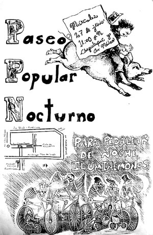 La intención del paseo popular ciclista es que retomemos los espacios que nos pertenecen de manera creativa y pacífica, vivir la ciudad y todos los espacios que se nos privan directa e indirectamente. El zine lleva editados 7 números y Popular sigue en movimiento, tanto que el pasado 27 de junio del 2007 se celebró el primer paseo popular nocturno: esta vez no se decide en la azotea del edificio viejo del centro sino en un apartamento donde tres de los colaboradores esporádicos y uno que otro miembro activo del zine platican sobre las calles, sus dificultades, los motores, los eventos en otras partes del mundo, lo enfadados que están y se preguntan ¿por qué no hacer entonces algo divertido que se diferencie de la vía recreactiva (para darle un enfoque ciudadano) y de cualquier evento controlado por las instituciones? , se planea la ruta -Chapultepec, Niños Héroes, Unión, Plan de san Luís, Enrique Díaz de León, andador Escorza.