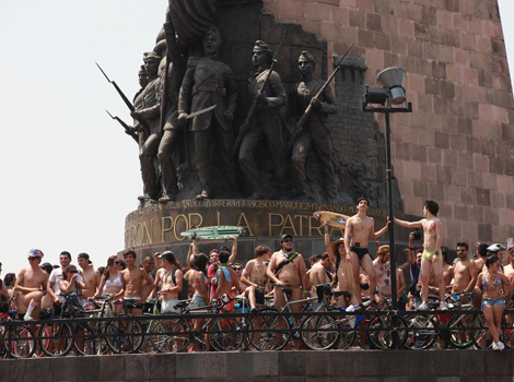 El sabado 9 se celebró en mas de 130 ciudades del mundo la Rodada Ciclista al Desnudo (WNBR). En la Ciudad de México se realizo por primera vez en 2006, en Guadalajara desde el año pasado, en esta ocasión más de 1000 ciclistas reivindicaron la necesidad de justicia en las calles, cuestionaron la sobreutilización del automovil y la gran dependencia de los combustibles fósiles.