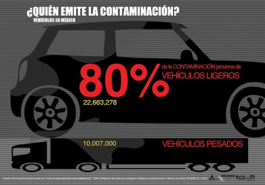 “Se considera el vehículo de las máquinas más ineficientes que se han inventado; le metes un litro de gasolina y las estimaciones más favorables indican que 30 por ciento de ese litro es el que se aplica en el movimiento del vehículo, lo demás se transforma y se vuelve contaminante; es importante hacer hincapié en esto, porque del total de emisiones, las fuentes fijas, es decir, las industrias, están en el rango de 3.3 por ciento de las emisiones, y las fuentes biogénicas —la evaporación natural, las emisiones, el arrastre de las partículas por el viento— están en el rango de 6 por ciento, y otros procesos terminan de integrar esa tabla de contaminación”, añade la funcionaria.