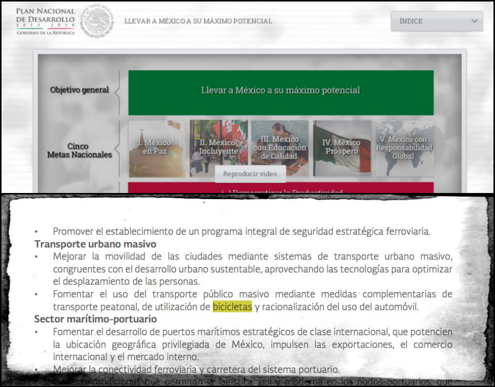 México, DF.- La Red Nacional de Ciclismo Urbano (BiciRed) celebra la inclusión del desarrollo urbano sustentable e inteligente dentro del PND 2013-2018. El fomento al desplazamiento peatonal, el uso de las bicicletas y la racionalización del uso del automóvil son un paso más en la transformación efectiva de la movilidad en las ciudades mexicanas, buscando que las inversiones del presupuesto público prioricen la calidad de vida de las personas y no la velocidad de los vehículos motorizados.