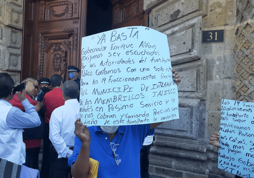 Por ello, Julía Urías Mariscal, representante vecinal en el fraccionamiento Los Olivos, acudió a Palacio de Gobierno, junto con decenas de colonos, para recordarle al gobernador Enrique Alfaro, que no olvide a quienes viven en la periferia.