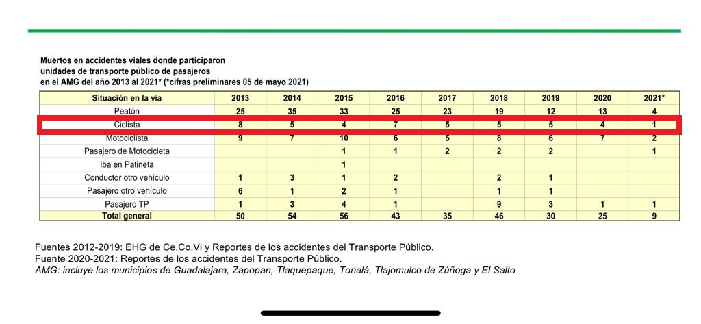 La Secretaría de Transporte lleva una estadística sobre muertes de personas relacionadas con accidentes en los que interviene el transporte público en el AMG, desde 2013.